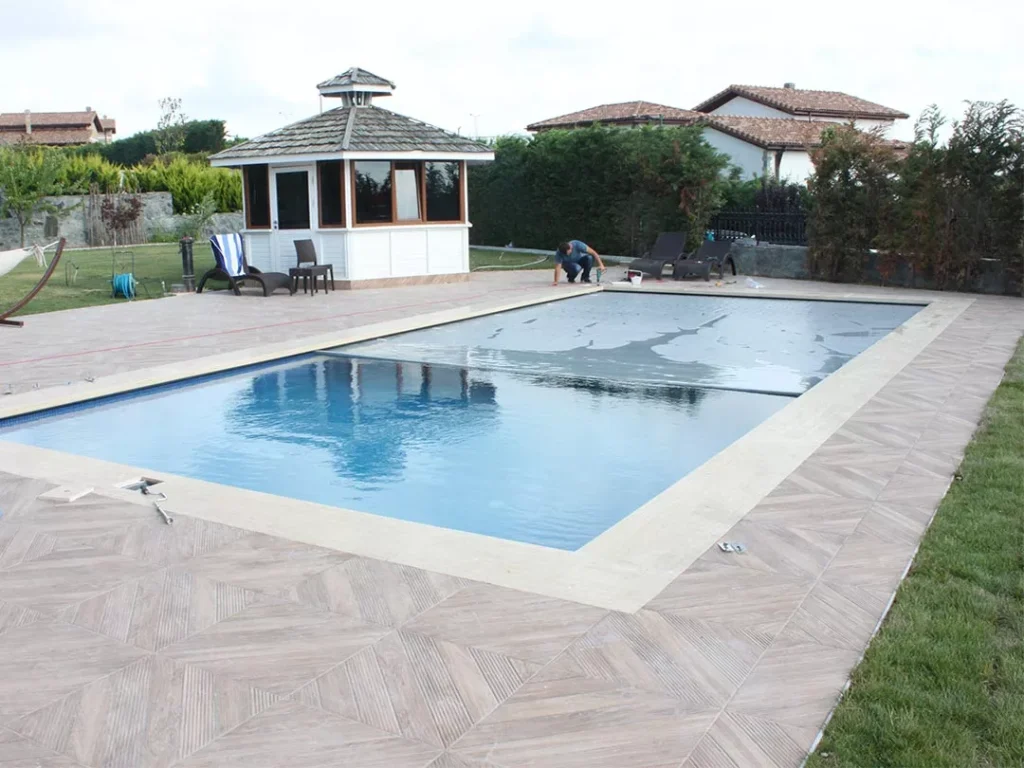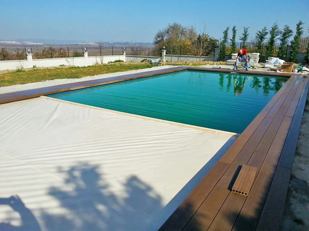 FLEXPOOL örtü, gizli taşmalı havuzlar için dizayn edilmiştir. Mevcut skimmerli ve taşmalı havuzlarda da güverte tadilatı yapılarak montajı yapılabilir.