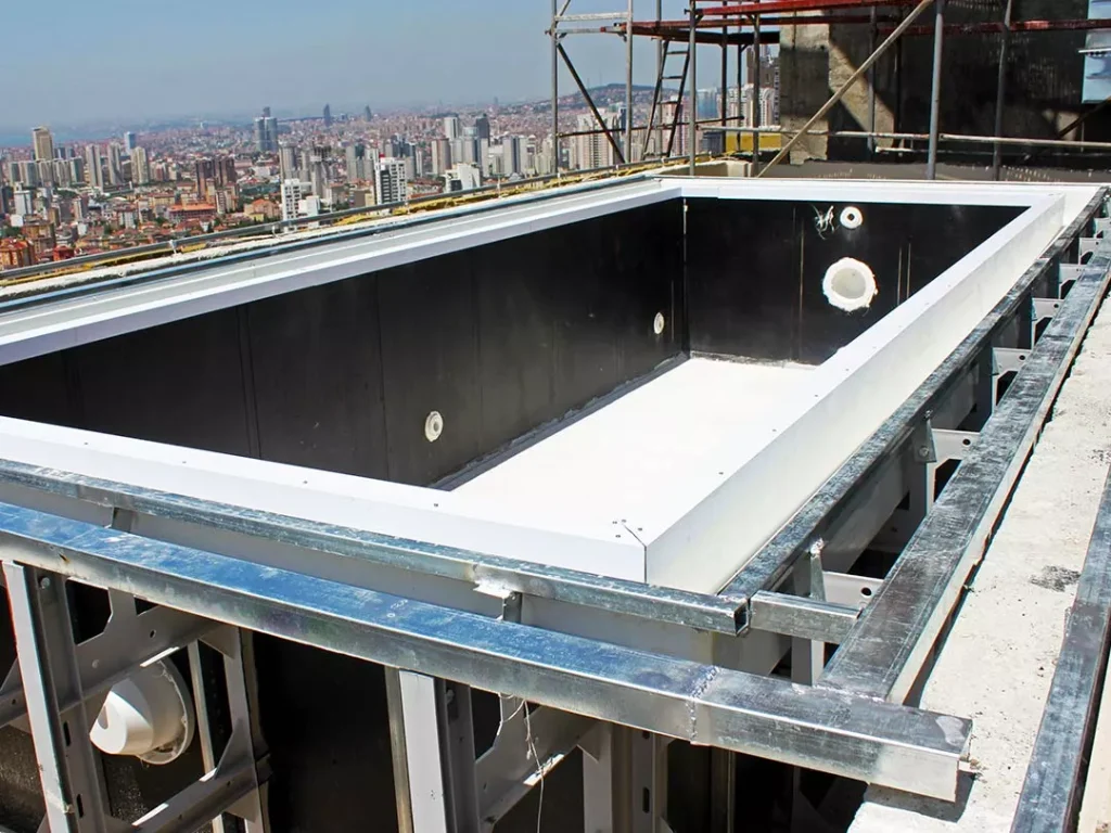 Çatı katı ve beton üstü kat havuzlarında Türkiye’nin bir numaralı havuz sistemidir. Havuz zati yükü betonarmeye nazaran 20 kat daha hafiftir. Kargir imalat yoktur. Çok önemli binalara 50 den fazla havuz yapılmıştır.